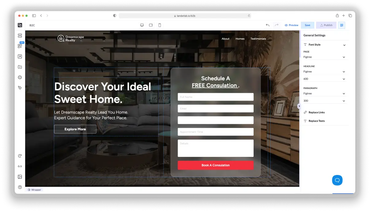 Use AI to generate landing pages for any B2C lead generation goal. Start with a clear, focused entry point, then customize copy, layout, and design to match your brand.