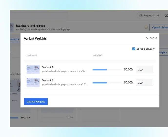 You don’t need to be a tech guru to do cool stuff here. Just pick a landing page, tweak it, set the weights, and LanderLab will take it from there.